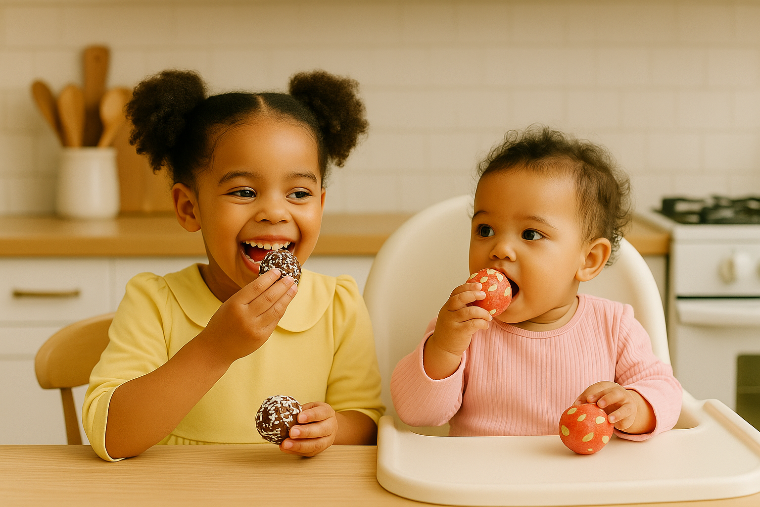 Powerballs zijn energierijke, gezonde snackballetjes gemaakt van natuurlijke ingrediënten zoals havermout, noten, dadels en fruit. Ze geven een snelle boost — perfect als tussendoortje voor kinderen -- of drukke ouders!