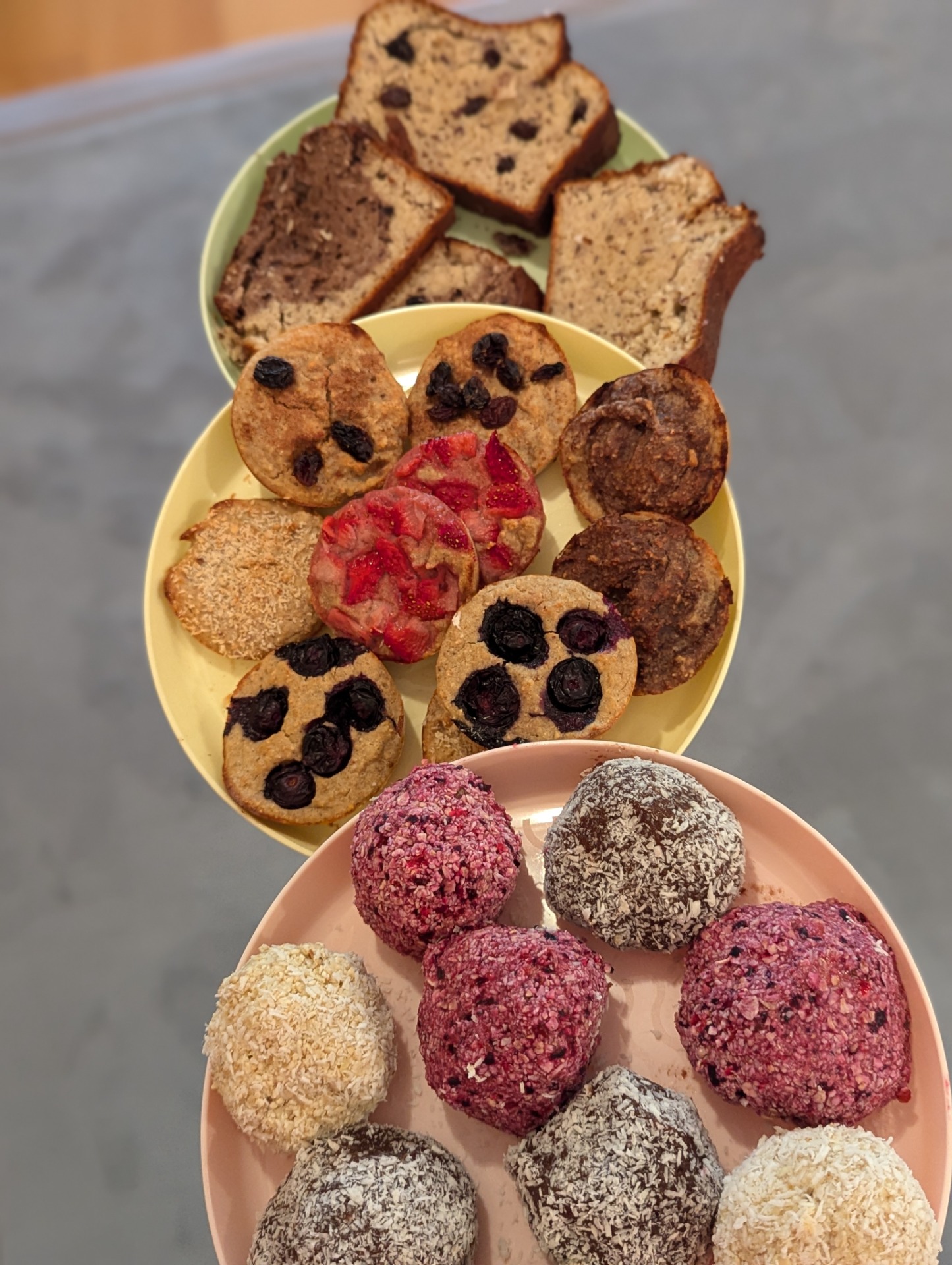 Geen suiker, geen bewaarmiddelen, wel bananenbrood, powerballs en havermoutkoekjes in veel varianten en met extra voedingsstoffen: noten, zaden, pitten, fruit, cacao,...